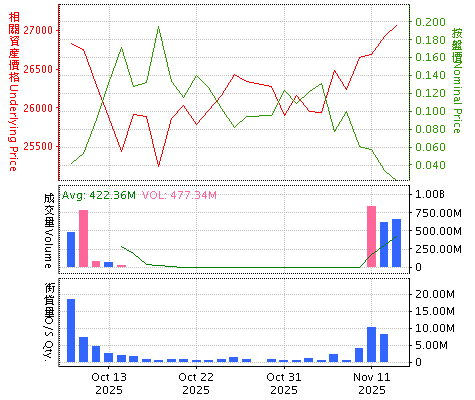 圖表內之價格及成交量為上一個交易日(T-1)的資料,而街貨量則為該交易日前兩天(T-2)的資料。