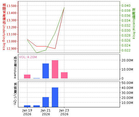 圖表內之價格及成交量為上一個交易日(T-1)的資料,而街貨量則為該交易日前兩天(T-2)的資料。