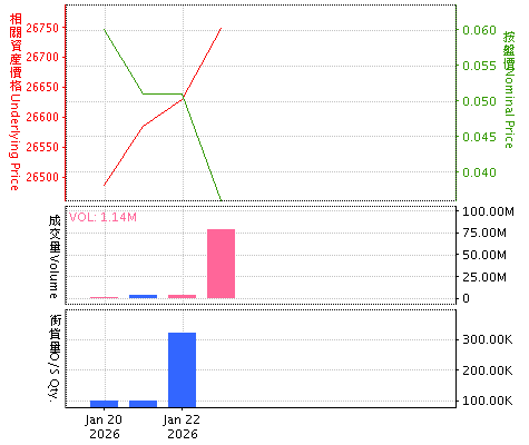 牛熊證搜尋 進階搜尋 資料更新: 2026年01月27日 05:08:34