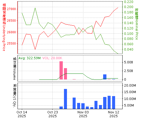 圖表內之價格及成交量為上一個交易日(T-1)的資料,而街貨量則為該交易日前兩天(T-2)的資料。
