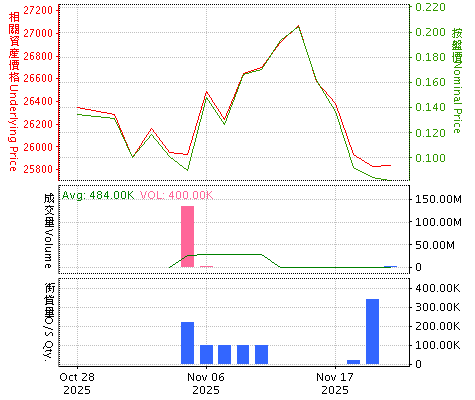 圖表內之價格及成交量為上一個交易日(T-1)的資料,而街貨量則為該交易日前兩天(T-2)的資料。