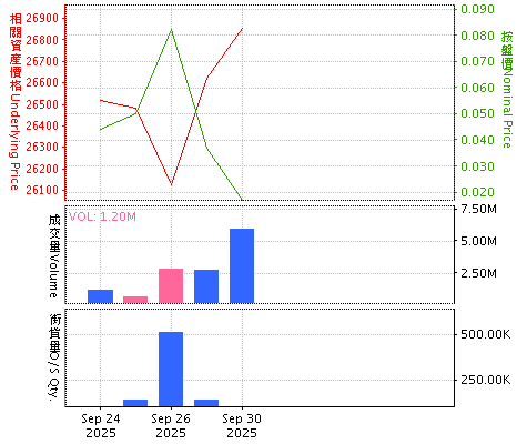 圖表內之價格及成交量為上一個交易日(T-1)的資料,而街貨量則為該交易日前兩天(T-2)的資料。