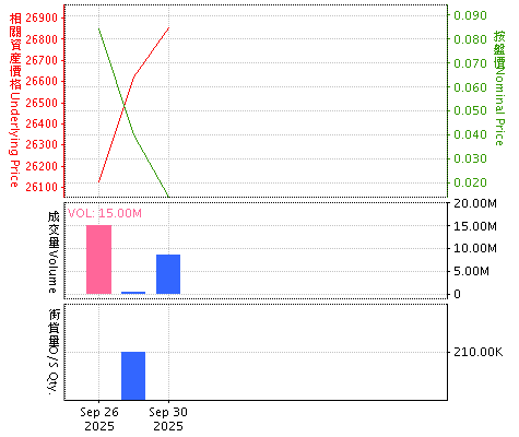 圖表內之價格及成交量為上一個交易日(T-1)的資料,而街貨量則為該交易日前兩天(T-2)的資料。