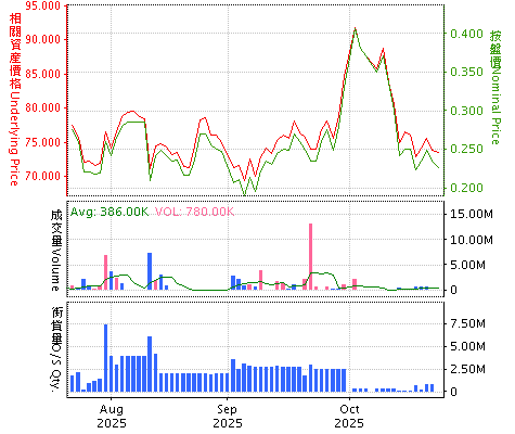 圖表內之價格及成交量為上一個交易日(T-1)的資料,而街貨量則為該交易日前兩天(T-2)的資料。