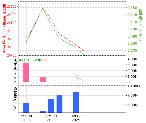 圖表內之價格及成交量為上一個交易日(T-1)的資料,而街貨量則為該交易日前兩天(T-2)的資料。