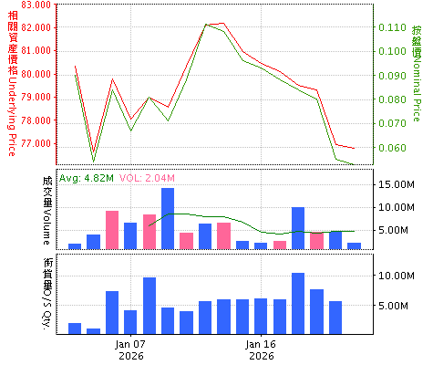 牛熊證搜尋 進階搜尋 資料更新: 2026年01月27日 05:07:38