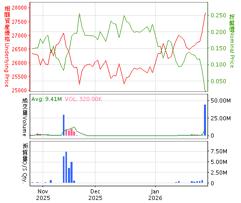 牛熊证搜寻 进阶搜寻 资料更新: 2026年01月29日 07:49:10