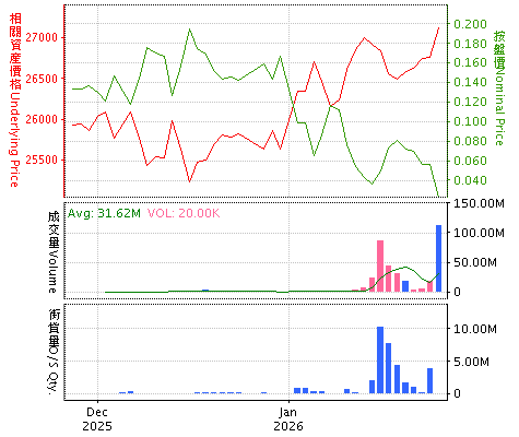 牛熊证搜寻 进阶搜寻 资料更新: 2026年01月28日 08:12:23