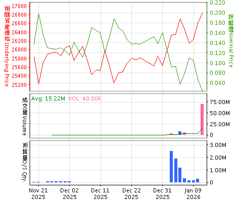 牛熊证搜寻 进阶搜寻 资料更新: 2026年01月15日 04:52:25
