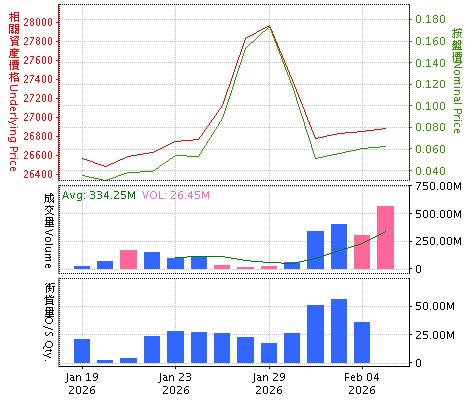 牛熊证搜寻 进阶搜寻 资料更新: 2026年02月07日 20:57:42