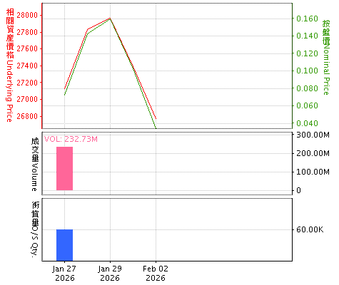 牛熊证搜寻 进阶搜寻 资料更新: 2026年02月03日 06:53:14