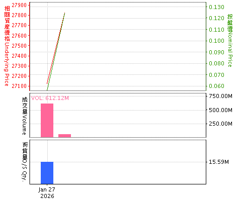 牛熊证搜寻 进阶搜寻 资料更新: 2026年01月29日 07:51:13