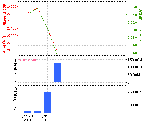 牛熊证搜寻 进阶搜寻 资料更新: 2026年02月03日 06:57:00
