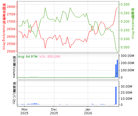牛熊证搜寻 进阶搜寻 资料更新: 2026年01月31日 20:51:19